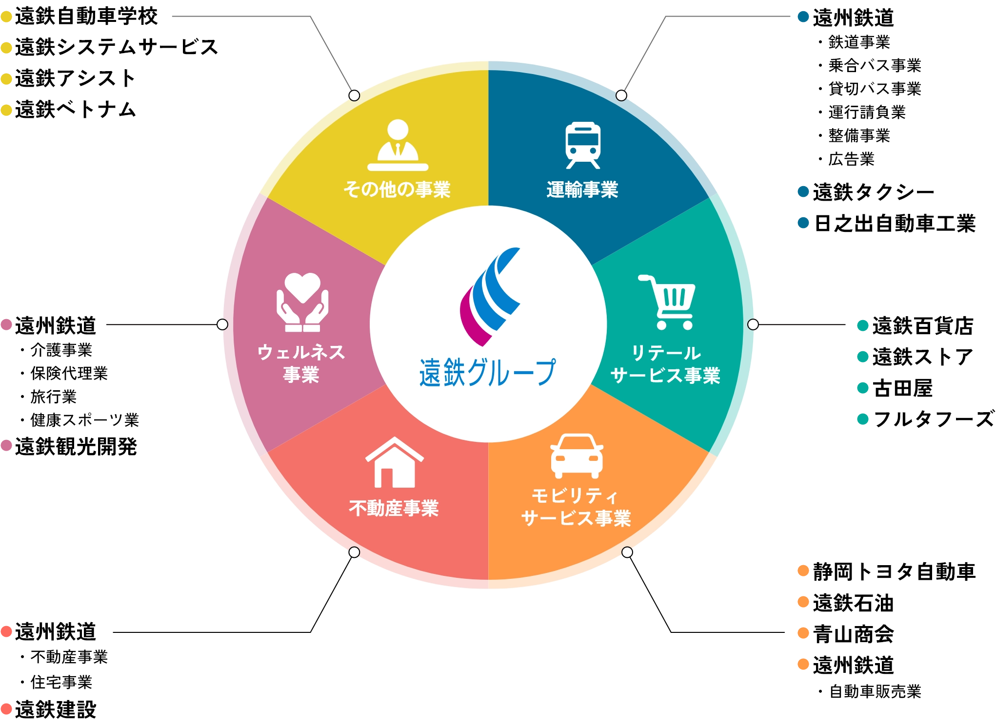 遠州鉄道の乗合バス事業は、静岡県西部地域をカバーし、多くのお客様にご利用いただいております。全国で初めて浜松市が指定された「オムニバスタウン事業」に、「超低床ノンステップバス」や非接触ICカード「ナイスパス」の導入等、日々お客様が利用しやすいよう変化をしつつ、人の流れの活性化に貢献しています。