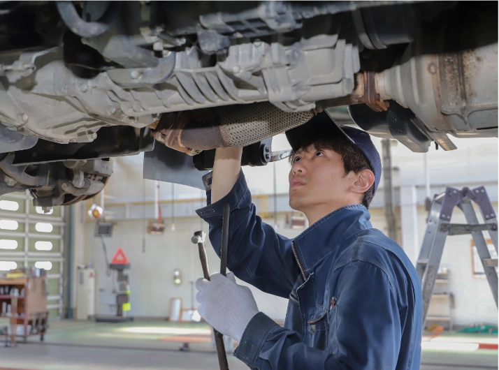 定期的な車両点検、整備を担当します。自社バス以外、一般大型車、中型車、乗用車など幅広い車種が対象です。
