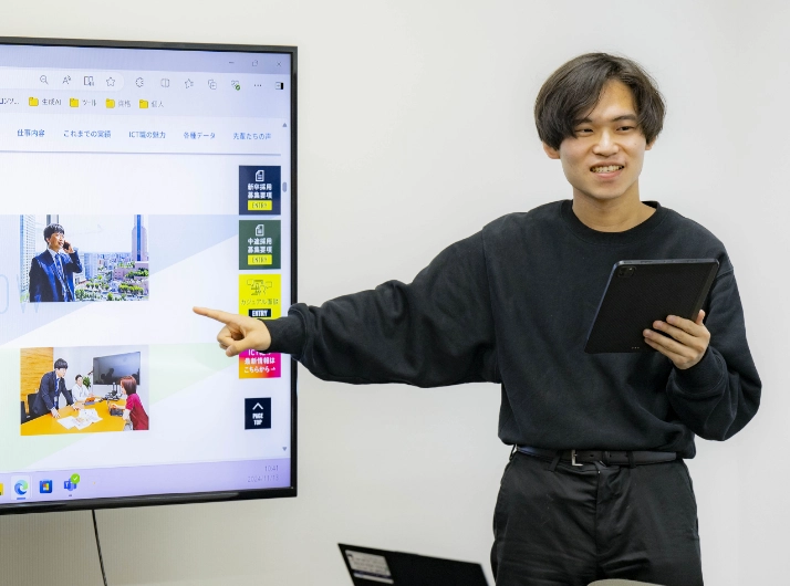 デジタル技術でサービス改善を行う仕事です。グループ各社の課題を分析し、ICTを活用した解決策の調査、提案、導入からアフターフォローまで担当します。