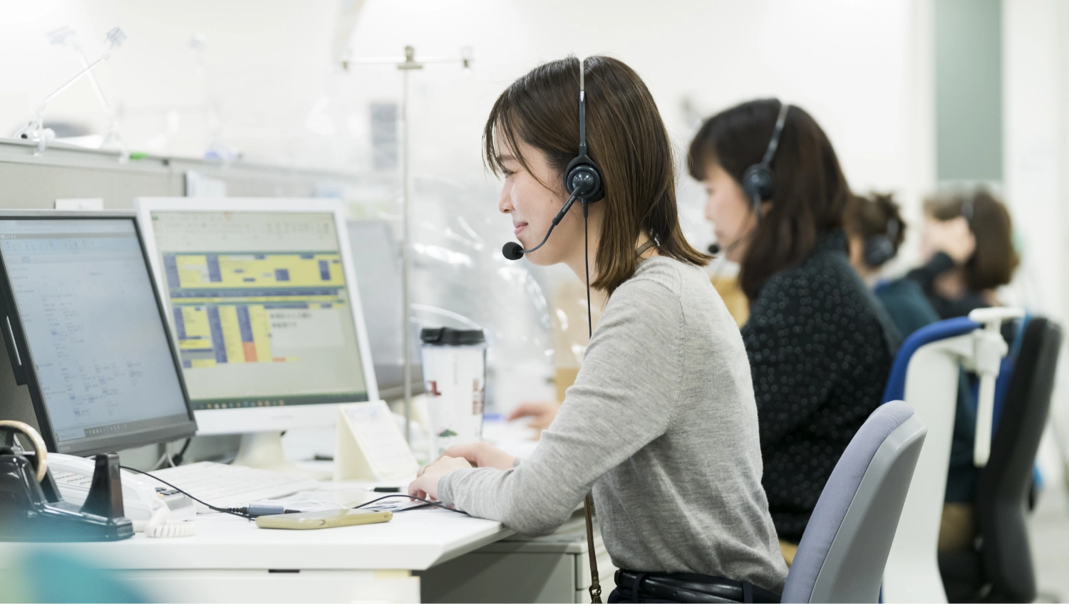 すでに保険をご契約いただいているお客様への定期的なフォローや、保険のご提案のためのアポイントをとる電話をかけることがメイン業務です。(保険営業事務)
